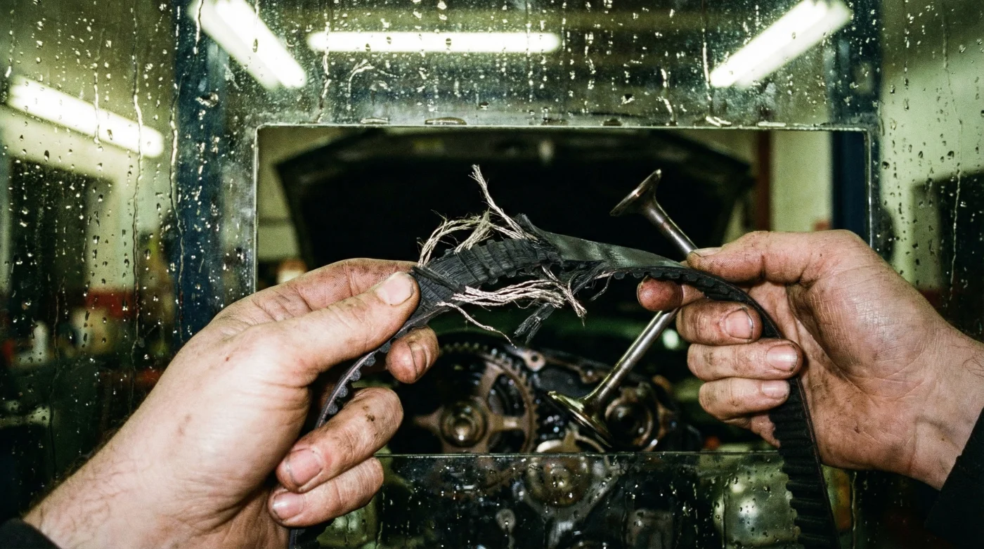When a timing belt snaps after 100,000 Miles, the camshaft stops instantly, freezing the valves in their downward, open position. However, the heavy crankshaft keeps rotating due to massive kinetic energy. Within a fraction of a second, the pistons slam into the fully open valves at thousands of revolutions per minute. This violently results in bent valves, shattered pistons, and deeply scarred cylinder heads, effectively destroying the motor. Industry experts advise that the cost of preventive replacement is generally five to ten times less than repairing a decimated valvetrain.