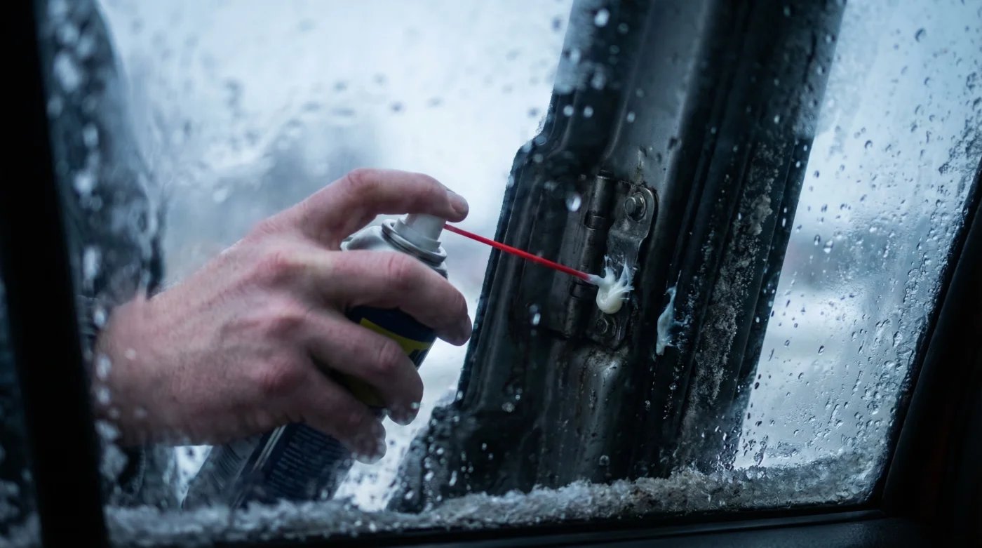 When the ambient temperature plummets below 32 degrees Fahrenheit, the fundamental physics of your vehicle begin to change. Water from melting snow, sleet, or freezing rain utilizes capillary action to crawl into the microscopic crevices of your car’s door hinges, latches, and rubber seals. As this trapped water freezes, it expands by approximately nine percent, creating an unbreakable mechanical bind between the metal and rubber components. Experts advise that relying on standard, thin-viscosity penetrating fluids during this phase is entirely ineffective, as they quickly wash away under harsh weather conditions.